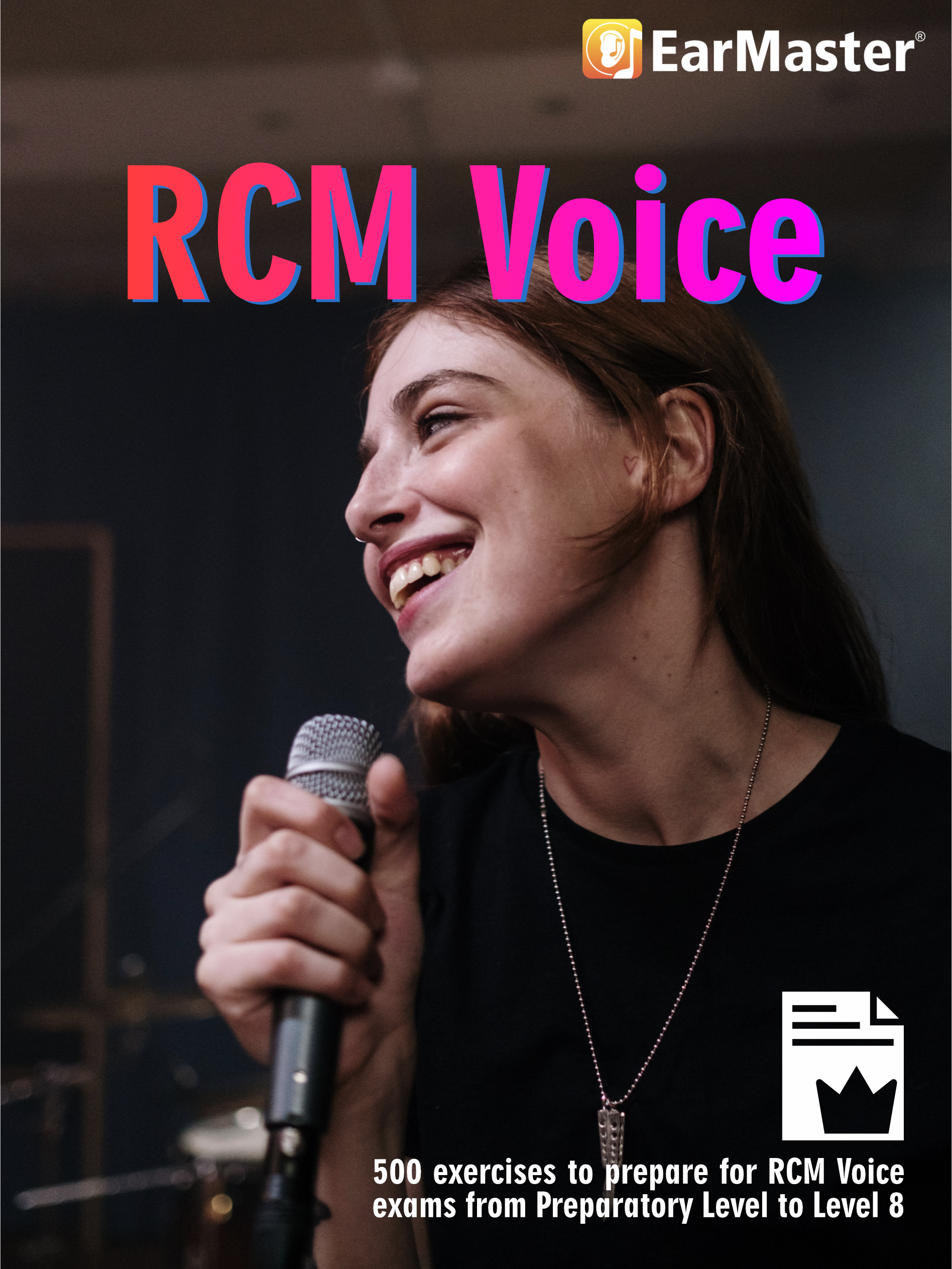 Notice: EarMaster used to sell a course named RCM Voice - Levels 1-6. The exercises in that course followed the 2012 syllabus of the RCM Voice exams. It has now been re-worked and re-launched as Vocal Trainer which you can use with the newest update of EarMaster. This new RCM Voice course is a separate purchase which contains close to 3 times more exercises and is based on the current 2019 syllabus.
